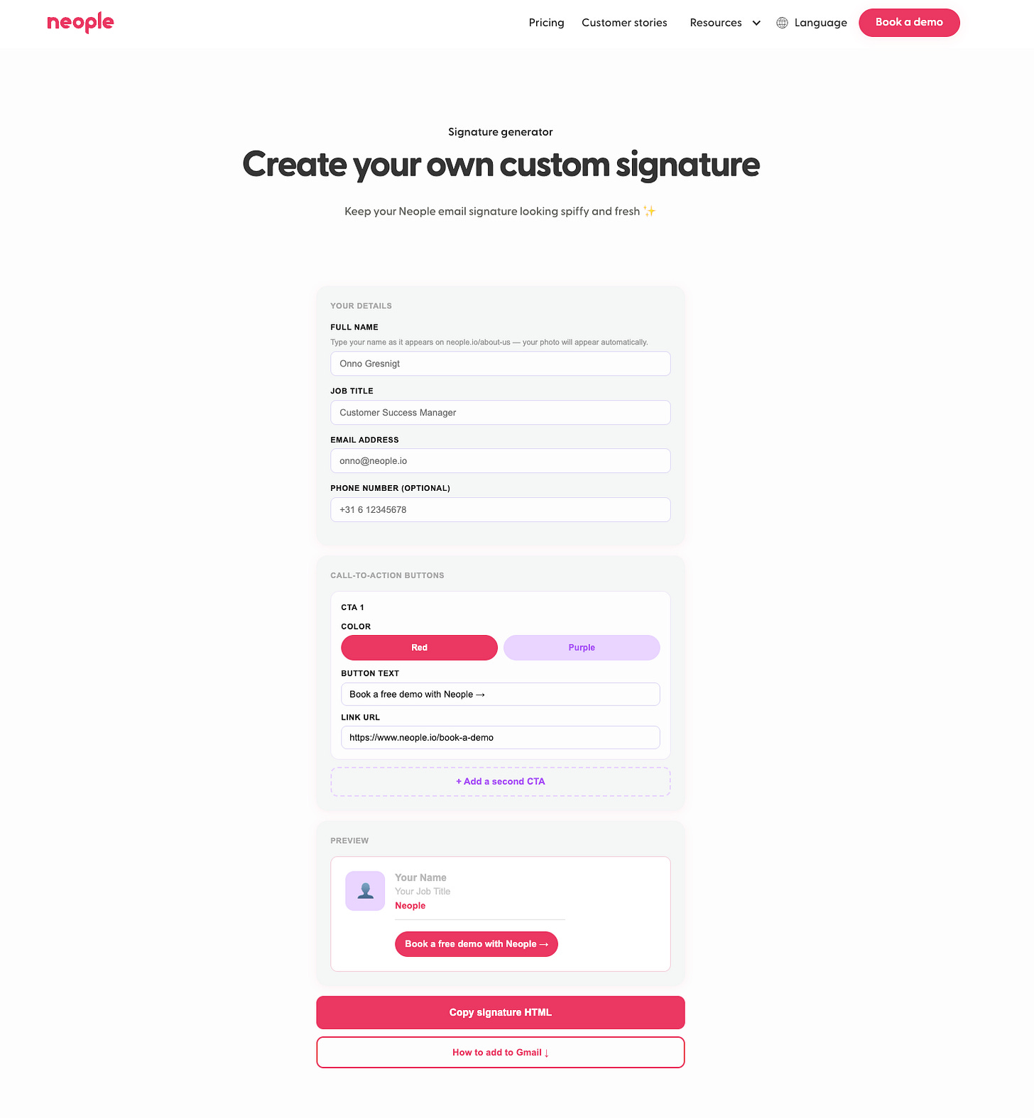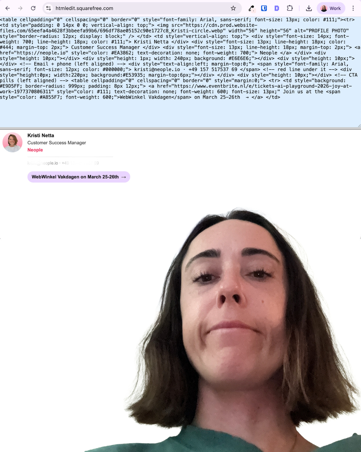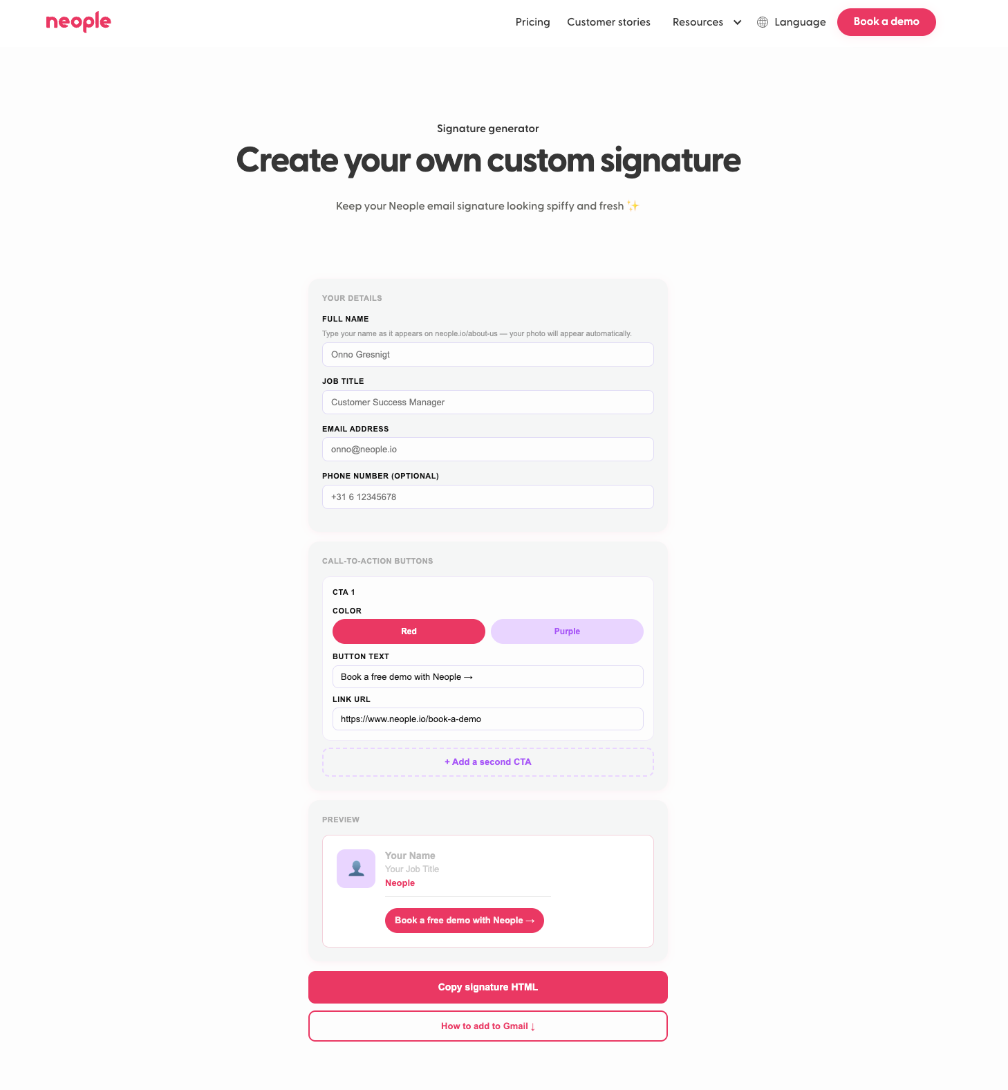 Neople exists to help people find more joy in their work. That’s the whole mission. And look — I’m not going to claim that a email signature generator is the most profound expression of that idea. But if I never have to open an HTML file, manually swap out a colleague’s name, and paste it into their Gmail settings ever again, I will be, genuinely, more joyful.