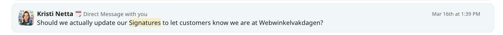 The third time, someone asked me how to update their signature to remove an event that had already happened.